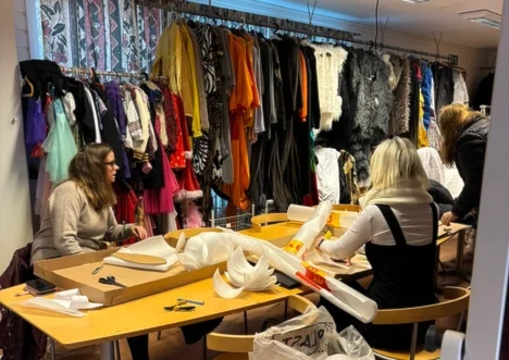 Vi har et stort lager med ferdige kostymer, masse klær og en egen systue med masser av ulike stoffer og materialer.